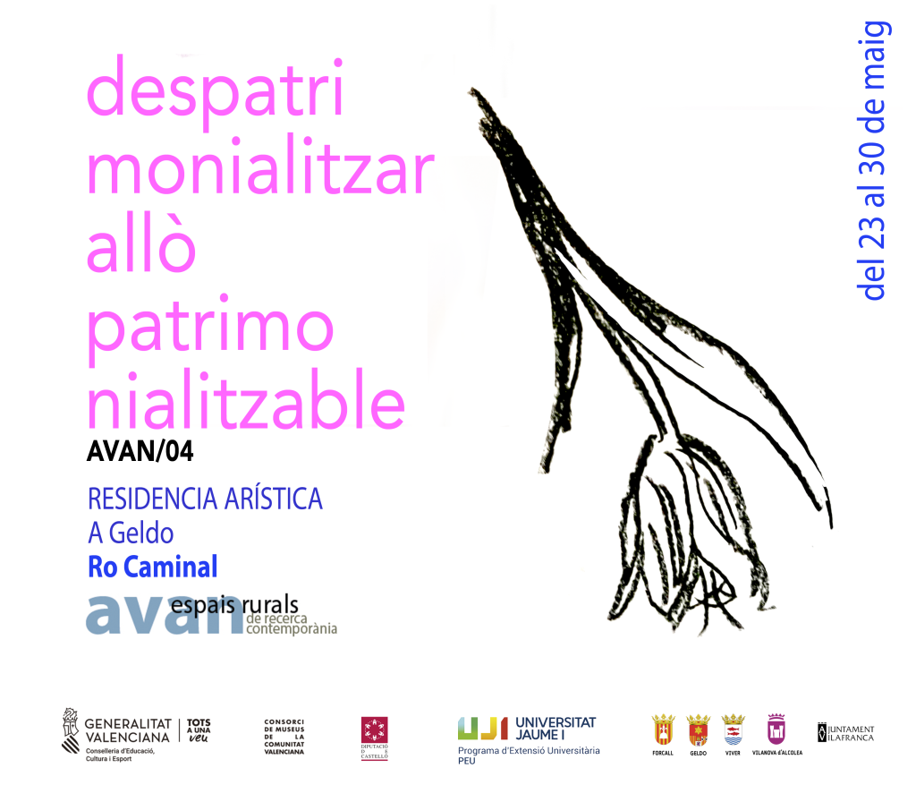 Geldo volverá a ser uno de los municipios (junto a Forcall, Vilafranca, Viver y Vilanova d’Alcolea) presente en el proyecto AVAN que reflexiona sobre el arte, la colaboración y el pensamiento crítico en municipios del interior de Castellón. Con el título «Despatrimonialización y el Arte Contemporáneo en los Territorios Rurales de Castelló», AVAN Espais rurals […]