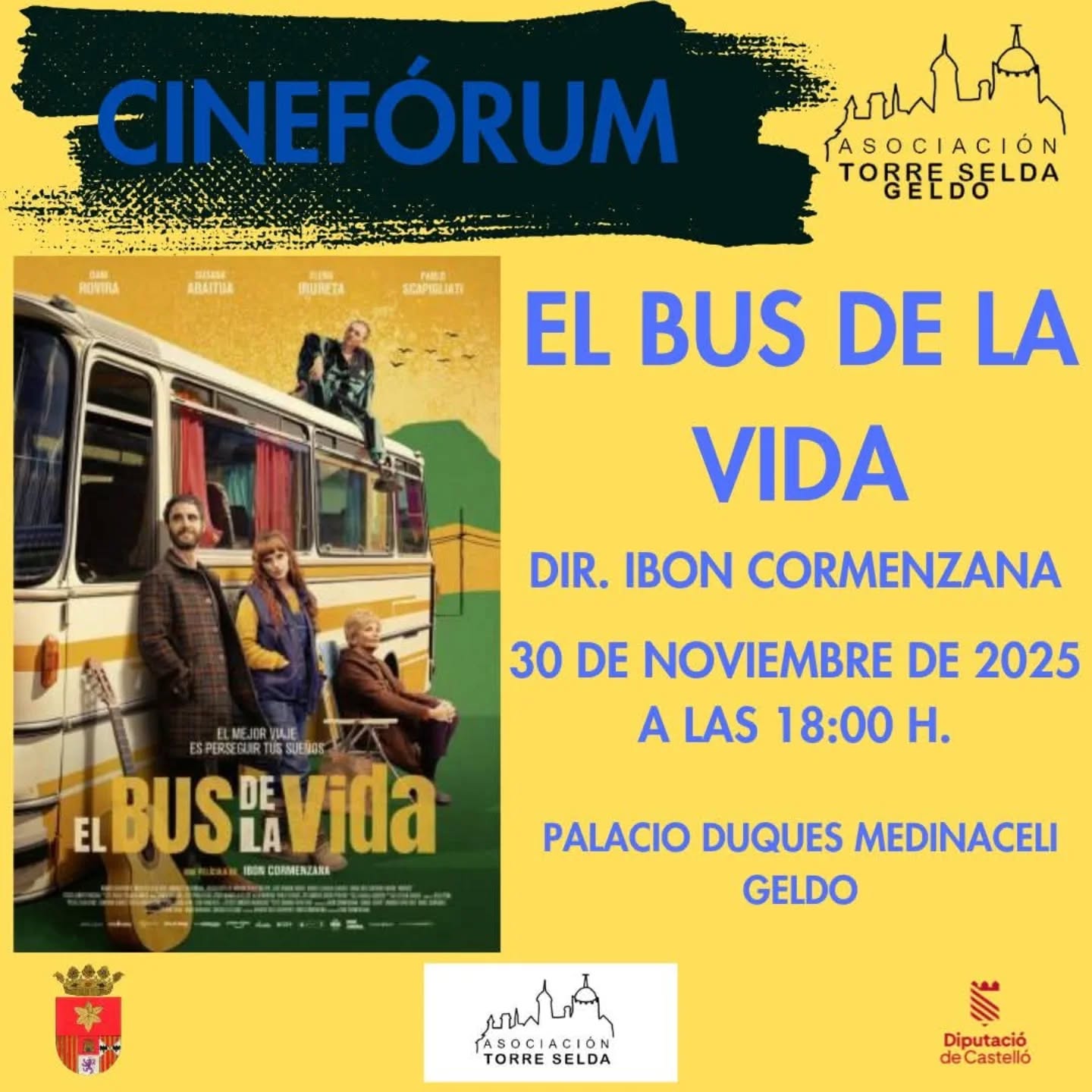 Este próximo domingo 30 de noviembre a las 18.00 h en el Palacio de los Duques de Medinaceli, la Asociación Cultural Torre Selda – Geldo organiza cinefórum con la proyección de la película del director Ibon Cormenzana: «El bus de la vida».