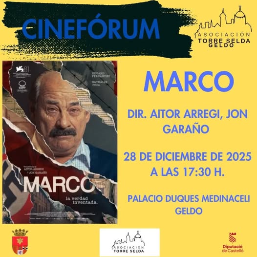 Este próximo domingo 28 de diciembre a las 17.30 h en el Palacio de los Duques de Medinaceli, la Asociación Cultural Torre Selda – Geldo organiza cinefórum con la proyección de la película de los directores Aitor Arregi y Jon Garaño: «Marco».
