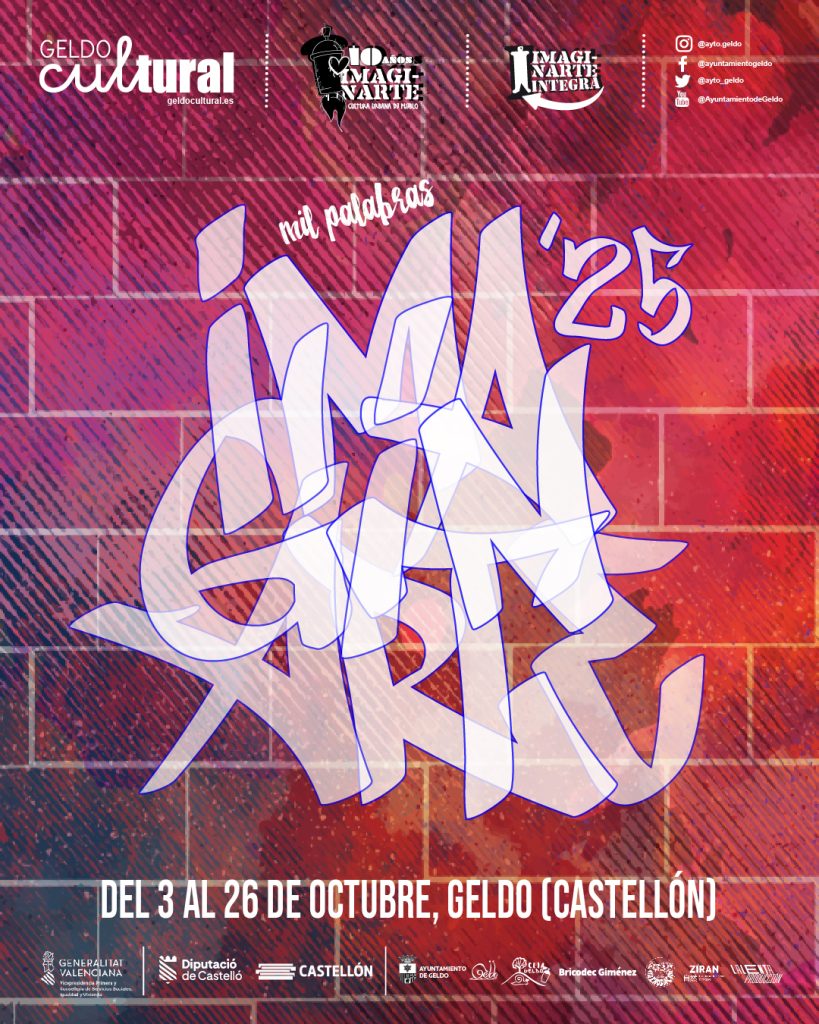 ¡¡Ya está aquí!! ¡Espectacular lo que vamos a vivir en Geldo durante la X edición de ImaginArte 2025 desde hoy viernes, 3 de octubre, hasta el domingo 26 de octubre! Os dejamos la programación completa porque esto no va solo de pintura… va también de MIL PALABRAS con mayúsculas porque el rap más nos va […]